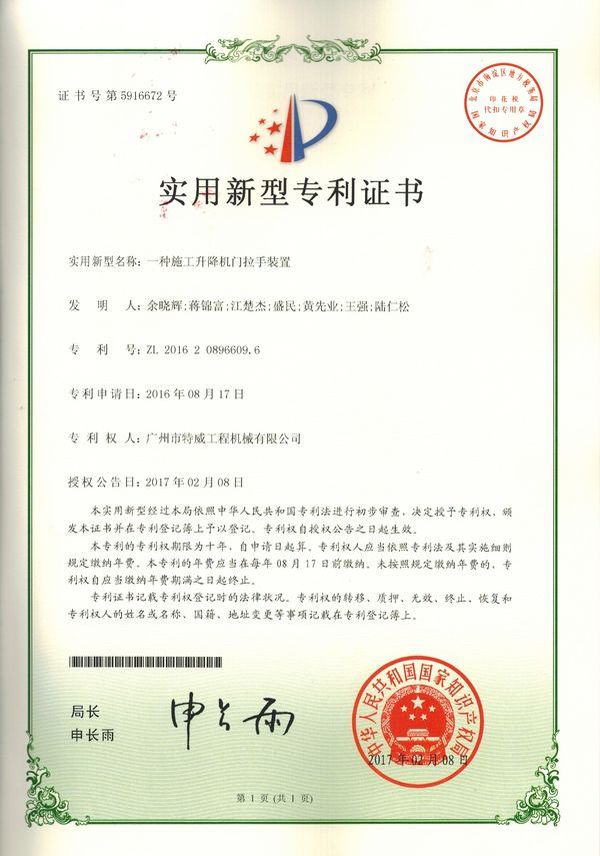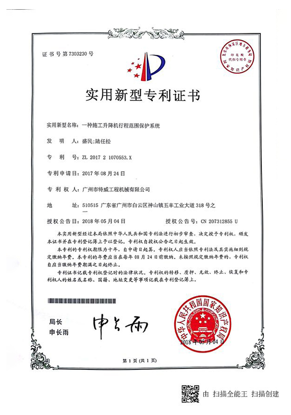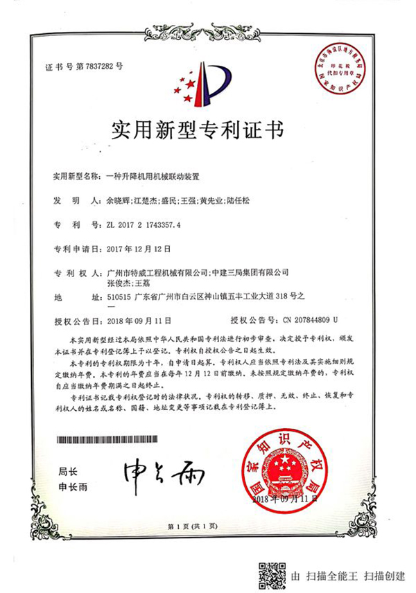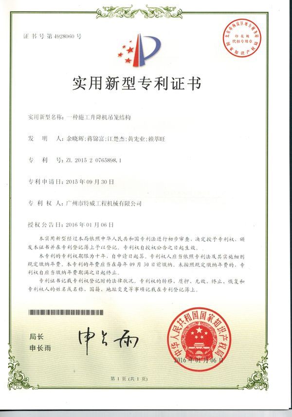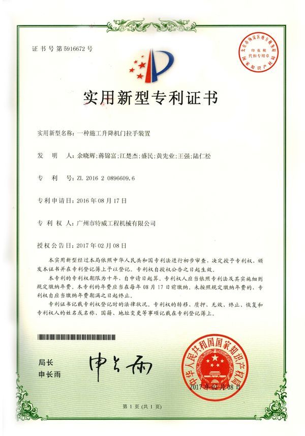 廣州市特威工程機(jī)械有限公司地處廣州市白云區(qū)神山鎮(zhèn),廣清高速神山出口附近,是一家施工升降機(jī)的專業(yè)生產(chǎn)廠家。公司成立于2011年,占地100000多平方米,注冊(cè)資金1060萬(wàn)元,現(xiàn)有員工300余人其中工程技術(shù)人員33人,高級(jí)技術(shù)人員52人。
